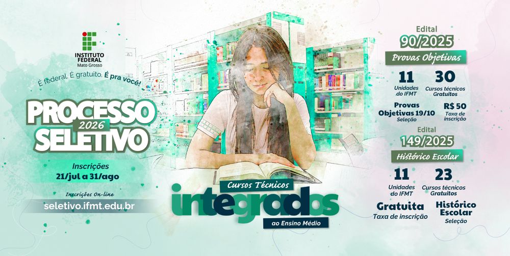 O Instituto Federal de Mato Grosso (IFMT) abriu o processo seletivo para ingresso em cursos